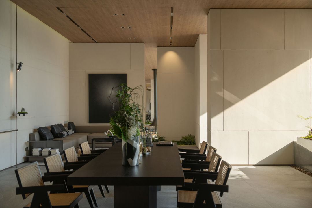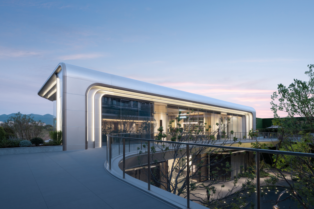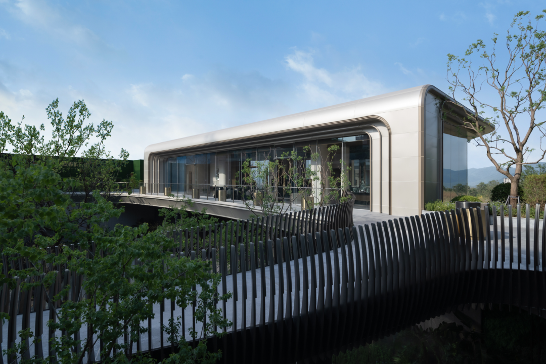 設(shè)計師以“隱”的設(shè)計手法貫穿整個體驗中心,提出“重構(gòu)天地”的設(shè)計理念,力圖打造出充滿文化內(nèi)涵的建筑展示空間。現(xiàn)代寫意的建筑風格,簡約大方,出檐深遠的金屬屋面,虛實變化的建筑立面,輕盈的步道連廊,在光影的變換下營造出淡雅,靜謐的院落氛圍。