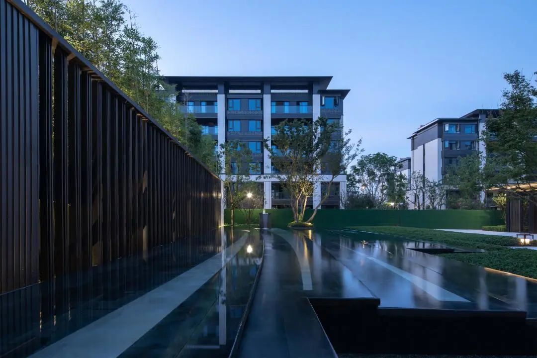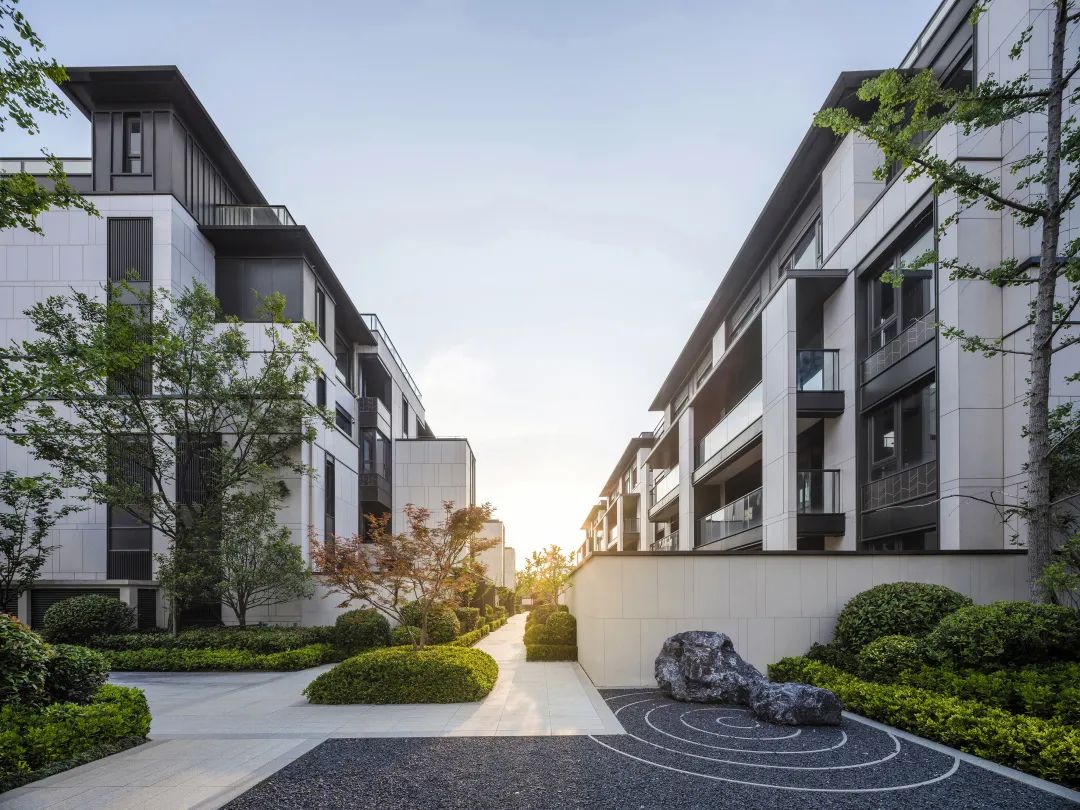 從建筑整體來看,太湖如院的新中式風(fēng)格既簡約又不失時代厚重感,在細節(jié)設(shè)計上,不同于常規(guī)新中式往往采用繁瑣的紋飾雕花,而是在現(xiàn)代藝術(shù)設(shè)計語境下形成更為契合當(dāng)下審美的新中式,配合高端宜居的居住氛圍。
