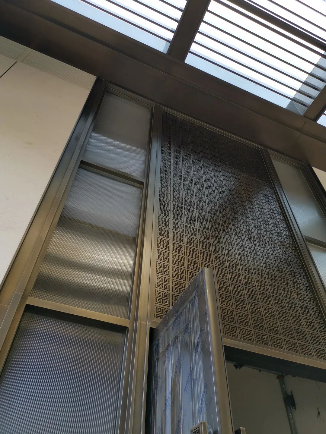 三進此空間為建筑+室內(nèi)+幕墻+景觀的一個多交界空間,結(jié)構(gòu)復(fù)雜;在綜合方面考慮,頂部采用透光板材打造主題寓意,在夜晚不開燈的情況下同樣可以欣賞到月亮;地面水景采用疊水以“水紋”元素來營造水景效果,成為串聯(lián)整個示范區(qū)的重要線索。