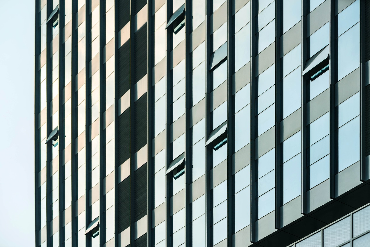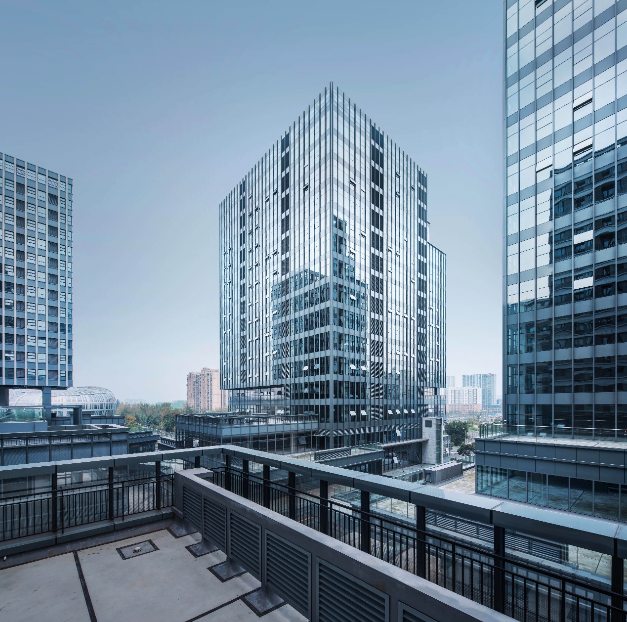 立面采用玻璃和鋁板作為主要材料,手法上通過(guò)體量的穿插與切割,形成了小體量的有機(jī)形態(tài),進(jìn)一步拉近了建筑與人的距離。在錯(cuò)落的體量中,跳躍出不同肌理不同的體塊。每層大露臺(tái)的設(shè)計(jì),打破傳統(tǒng)的單一造型,同時(shí)又不失于整體視覺(jué)效果上的統(tǒng)一形式。
