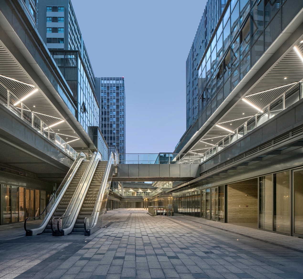 城市化的建筑,模糊了城市與建筑之間的界限,在建筑內(nèi)部打造室外空間,形成一個(gè)開(kāi)放式的TOD商務(wù)生態(tài)圈。沿著主要街道,蔓延出眾多支路,形成網(wǎng)狀結(jié)構(gòu)。與周邊無(wú)縫對(duì)接的地鐵站、街角、醫(yī)院形成規(guī)劃序列,體現(xiàn)建筑所具有的開(kāi)放性與整體性,進(jìn)而影響帶動(dòng)區(qū)域的發(fā)展,保證區(qū)域價(jià)值及形象的全面提升。