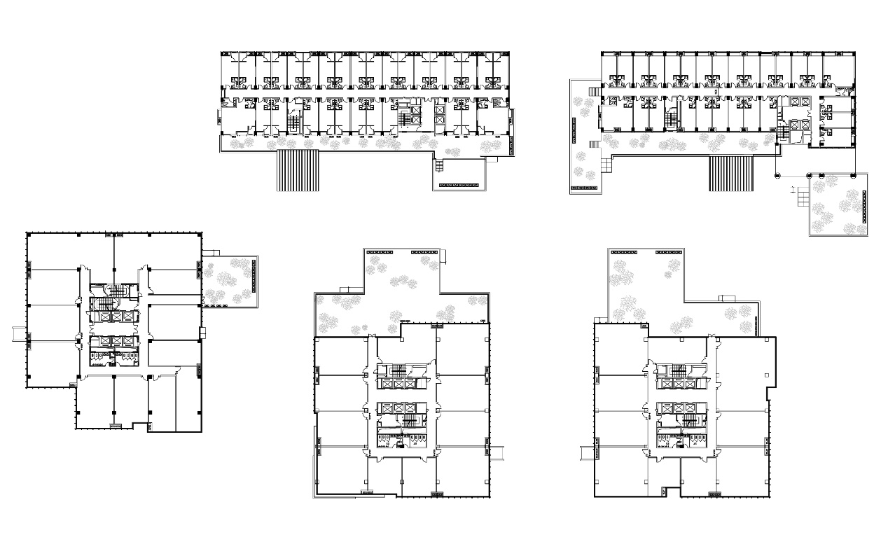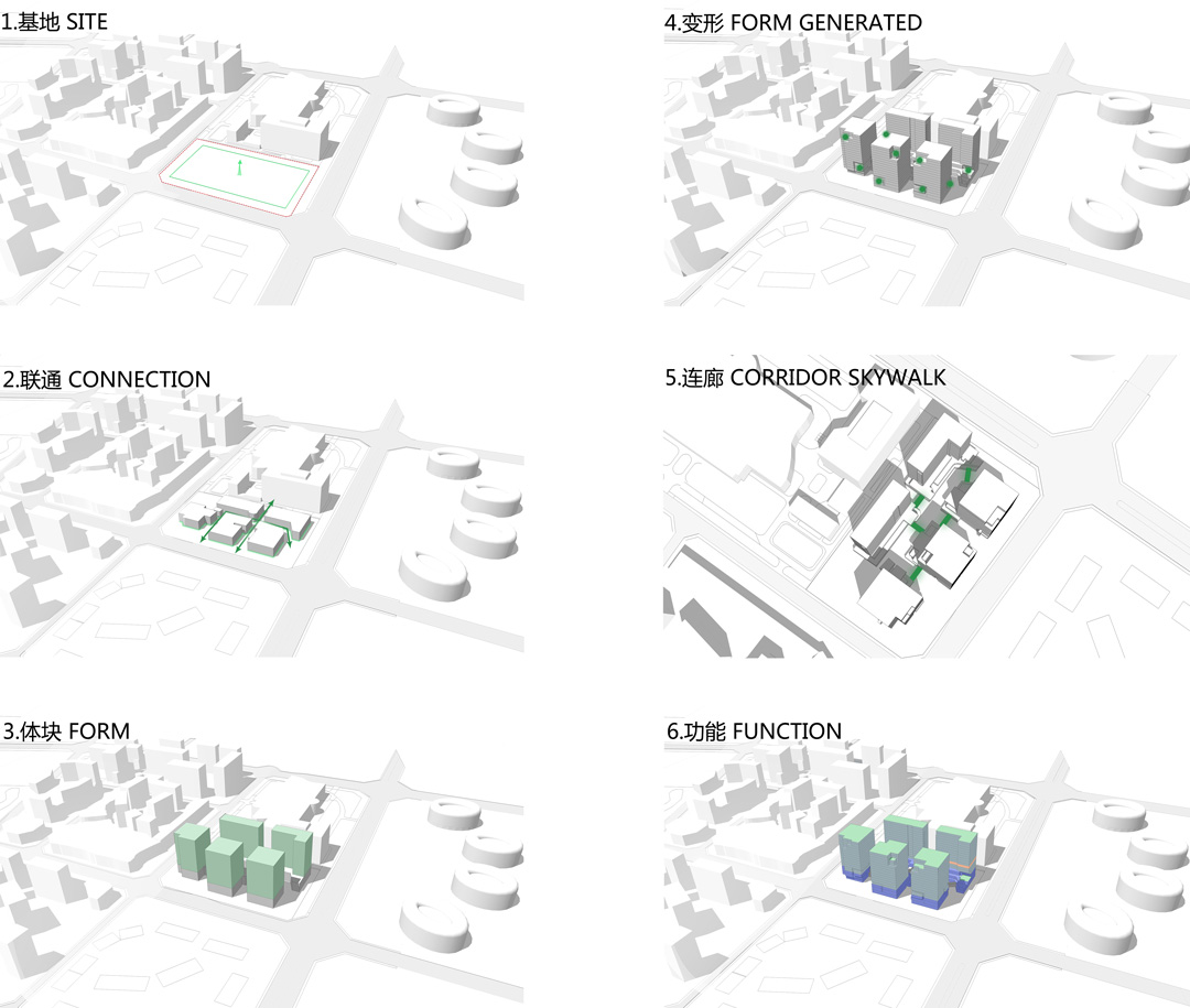 為了消除建筑體塊規(guī)模對(duì)人的壓迫感,用加減的設(shè)計(jì)手法,塑造高低錯(cuò)落,疏密有致的空間。多樣化的建筑語(yǔ)言減少了建筑的整體尺度,使人和環(huán)境之間有了更親密的感官互動(dòng)。立面與空間形態(tài)體現(xiàn)出了建筑單體所具有的連續(xù)性與整體性,表現(xiàn)出了建筑單體具有的特性。