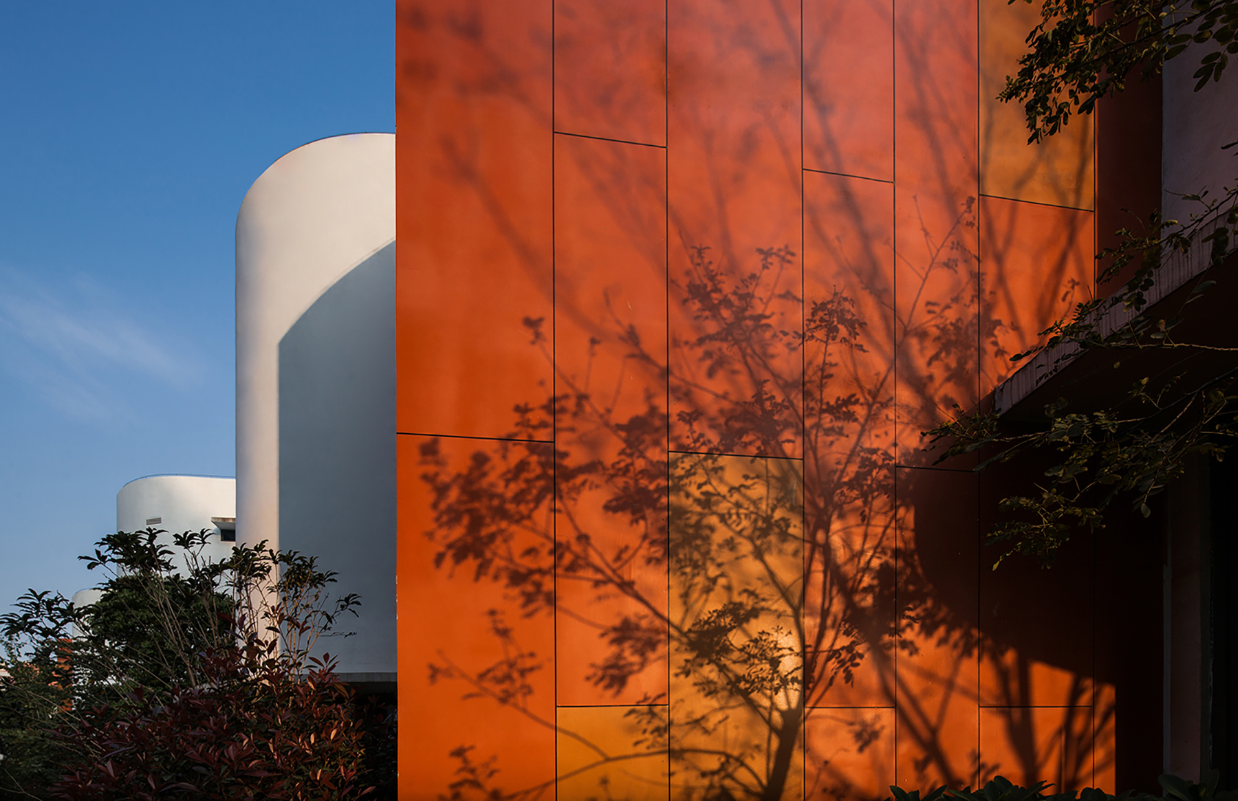 不同尺度的洞口隨陽(yáng)光照射角度的不同也為走廊空間塑造了生動(dòng)的光影效果,無(wú)論從室內(nèi)還是室外都帶給人豐富的視覺(jué)體驗(yàn)。