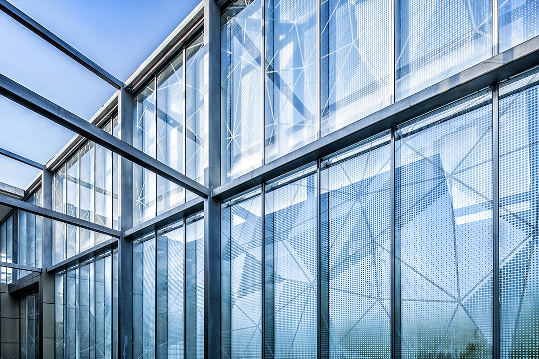 在極短時(shí)間里和做工上的難度,對(duì)于極小尺寸的把控,橫隱豎顯的幕墻體系,營(yíng)造景觀層次和空間厚度的效果。利用玻璃材料的反射和透射,結(jié)合數(shù)碼彩釉技術(shù),共同打造一個(gè)邊界模糊、層次流轉(zhuǎn)的含蓄形態(tài)。