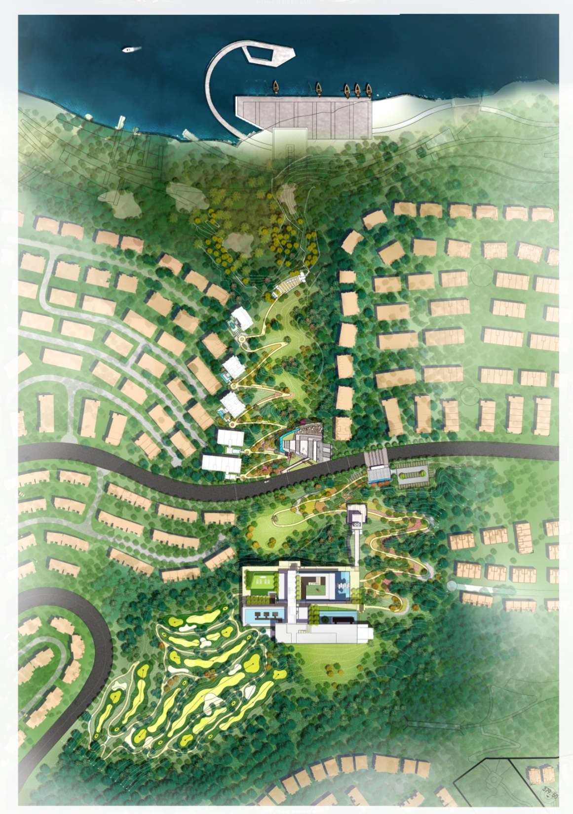 項目位于重慶市北部新區(qū)黃茅坪,順山為場,應(yīng)水為策,將建筑化零為整,錯落有致,尋找建筑與自然的共生。設(shè)計為與地形契合,以“由高入低、錯落層疊”設(shè)計手法,合理排布各使用功能,江景資源最大化,坡地的營造和利用反映出建筑對自然環(huán)境、人文生態(tài)城市的關(guān)懷。