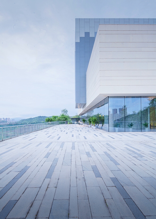 大面積的露臺設(shè)計,可眺望嘉陵江以及整座城市,屋頂花園的設(shè)計豐富了建筑的空間內(nèi)涵和景觀層次,打造了一個充滿活力的公共交往空間。通過細(xì)分使用人群的目的和行為,為公眾營造出相應(yīng)的活躍場所。