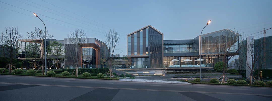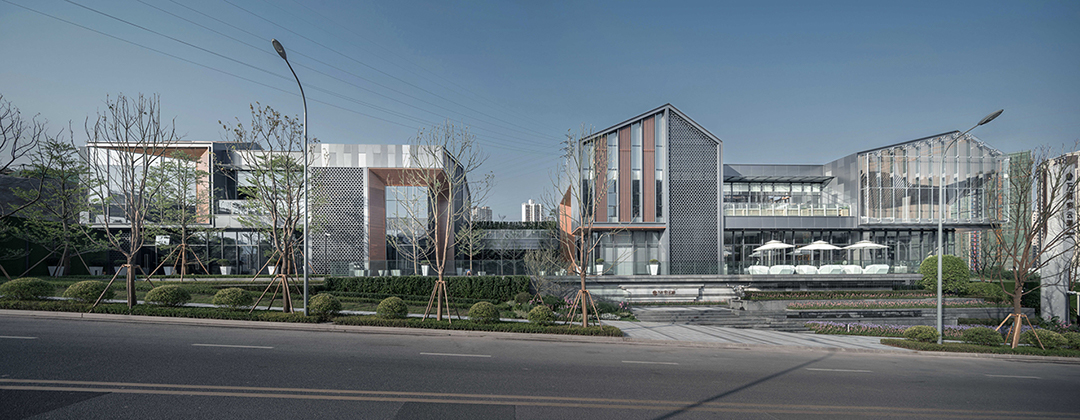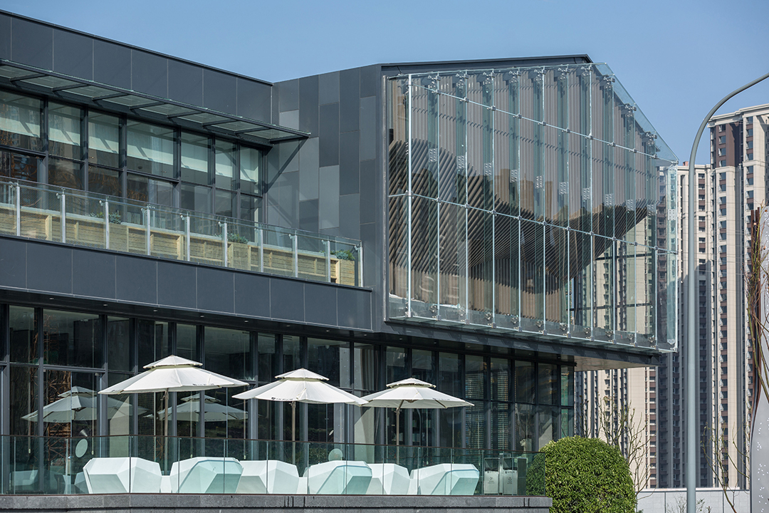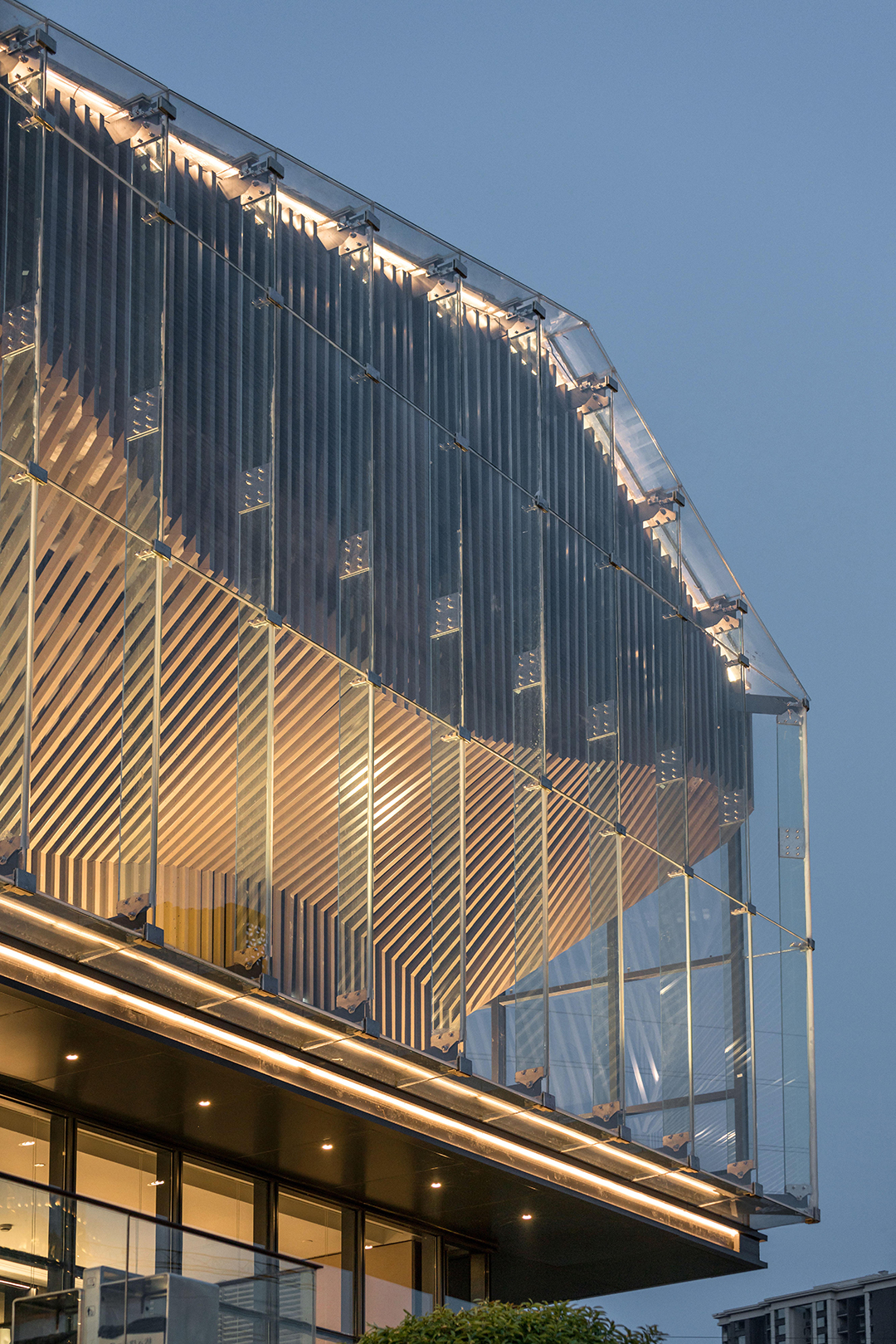 每一個局部在形式上塑成母題上的統(tǒng)一,在通透的超白玻璃后面,水的曲線,利用木格柵抽象的表達(dá),它與整體是具有創(chuàng)造性的有機(jī)關(guān)系。