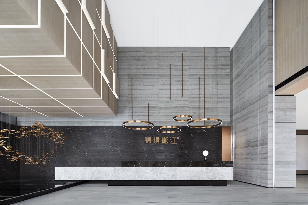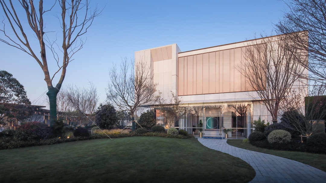 錦繡樾江府生活美學館位于南京江北自貿區(qū)研新路與園特路交匯處,是社區(qū)配套商業(yè)街的一部分。在設計中將建筑與室外景觀相互襯托,在唯美的人工空間中,引入一絲自然的環(huán)境美,營造一個有溫度、會交流的生活美學館。