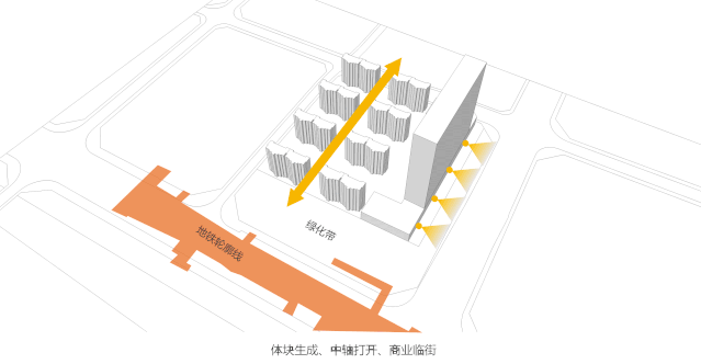 結(jié)合兒童游樂,藝術(shù)娛樂,健身體驗(yàn)等三大功能,通過綠色景觀軸的延伸,打造具有高效步行空間、完善的配套公共服務(wù)設(shè)施等一系列優(yōu)勢(shì)的鄰里生活街區(qū),極大地提升區(qū)域內(nèi)的居住活力氛圍,形成居住,商業(yè),配套與游樂的無縫對(duì)接。