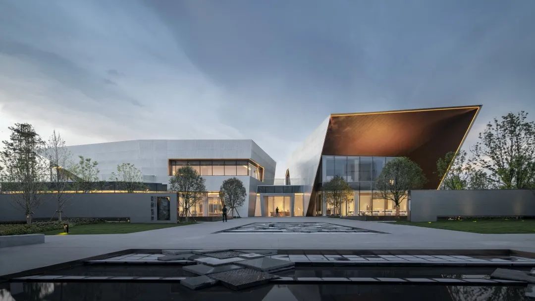 這座標志性的建筑位于湖南省株洲市天元區(qū),南面可遠眺萬豐湖濕地公園。建筑形態(tài)呈現(xiàn)出兩塊幾何變形的空間序列,并于內(nèi)部空間和外部景觀間建立一個精心編排的體驗序列。