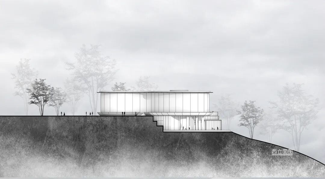 項(xiàng)目設(shè)計(jì)之初,如何能在山河之間形成一所既能充分享有景觀資源,又不會(huì)被周邊鱗次櫛比的建筑淹沒(méi)的“小”藝術(shù)館是思考的重點(diǎn)。未來(lái)在旁邊的山頭還會(huì)有坂茂設(shè)計(jì)的濕地博物館,怎么讓這兩所關(guān)系緊密的建筑完美結(jié)合也是設(shè)計(jì)立意的另一維度。