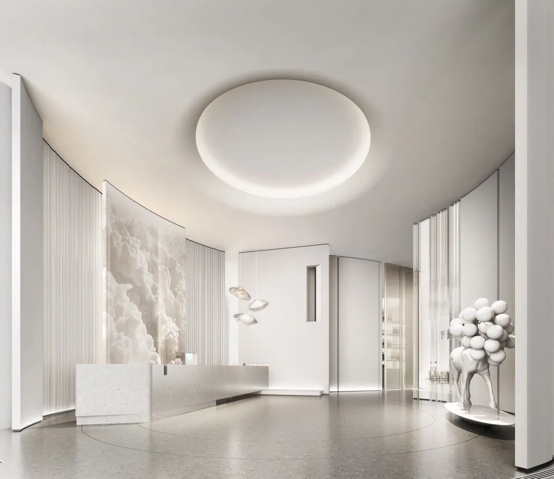 一片縈繞在山間的云,山中有云,云間有山。設(shè)計(jì)尋找一種新的語(yǔ)言,將東方的意境以更加未來(lái)的方式呈現(xiàn),創(chuàng)造出東方文化與現(xiàn)代主義相結(jié)合的全新體驗(yàn)。