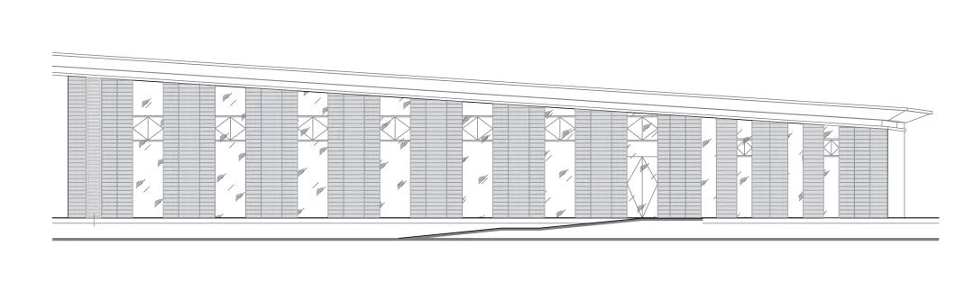建筑最顯著的特點(diǎn)是利用向中央傾斜的屋頂,在從南到北的環(huán)境中繪制出可識別的標(biāo)志。