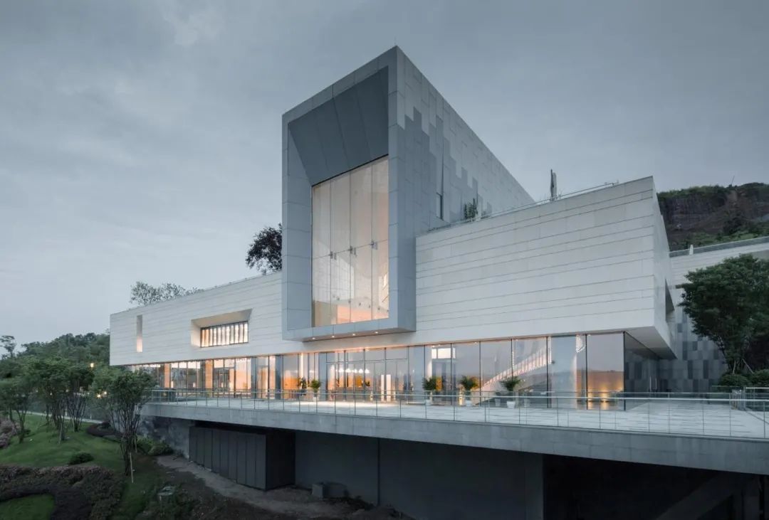 本案位于重慶龍興懸崖之巔,遠(yuǎn)眺御臨,極簡(jiǎn)設(shè)計(jì),順應(yīng)地形。建筑師選擇將建筑置于最高處的巖體之上,極具戲劇性的斷崖式高差,巧妙的選擇角度后,最大化利用景觀資源,一望無(wú)際的視距,建筑猶如張開(kāi)雙翅的仙鶴傲立于仙巖之上。倚山而建,山物一體,十里之外,仍見(jiàn)其磅礴雄姿。