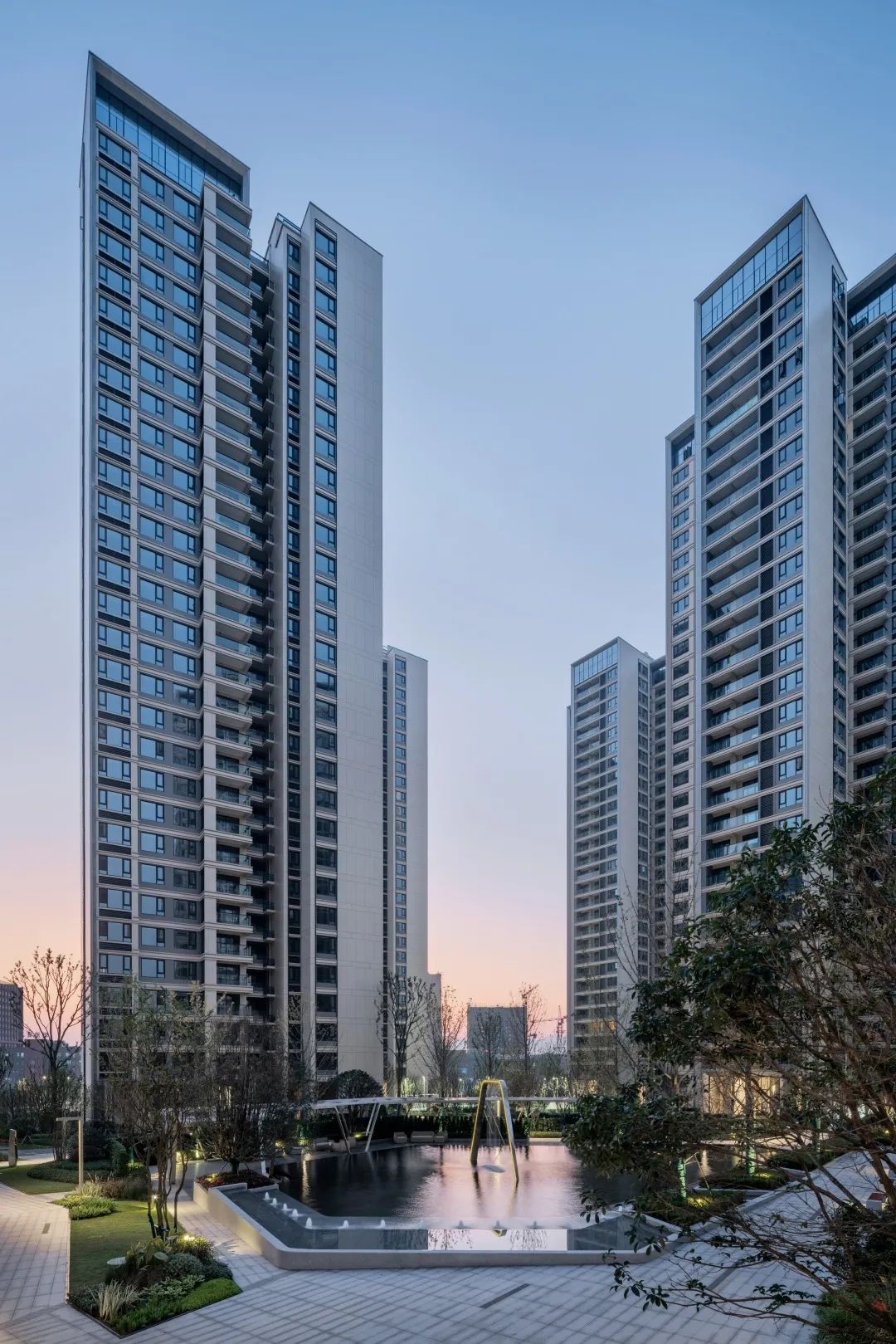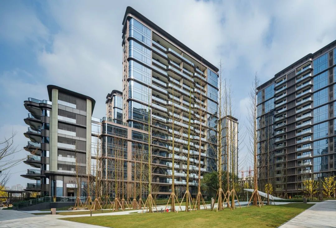 本案延續(xù)照母山肌理加以梳理,詮釋山水意境。在一環(huán)一帶中訴說(shuō)悅?cè)慌c靈氣,隱士之居,呼之即出,秉承“三軸六庭”的空間序列感?!伴T-庭-院”的遞進(jìn)布局,滲透古典園林建筑的“隱逸美學(xué)”。外立面設(shè)計(jì)上引用藏山納水的設(shè)計(jì)理念,形態(tài)上舍棄了傳統(tǒng)住宅的剛正形象,采用弧形立面設(shè)計(jì),將山的剛毅,與水的柔和完美演繹,宛如生長(zhǎng)在照母山上的植物一般,充滿生命力。